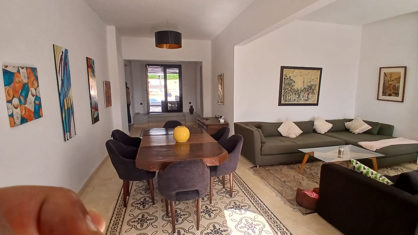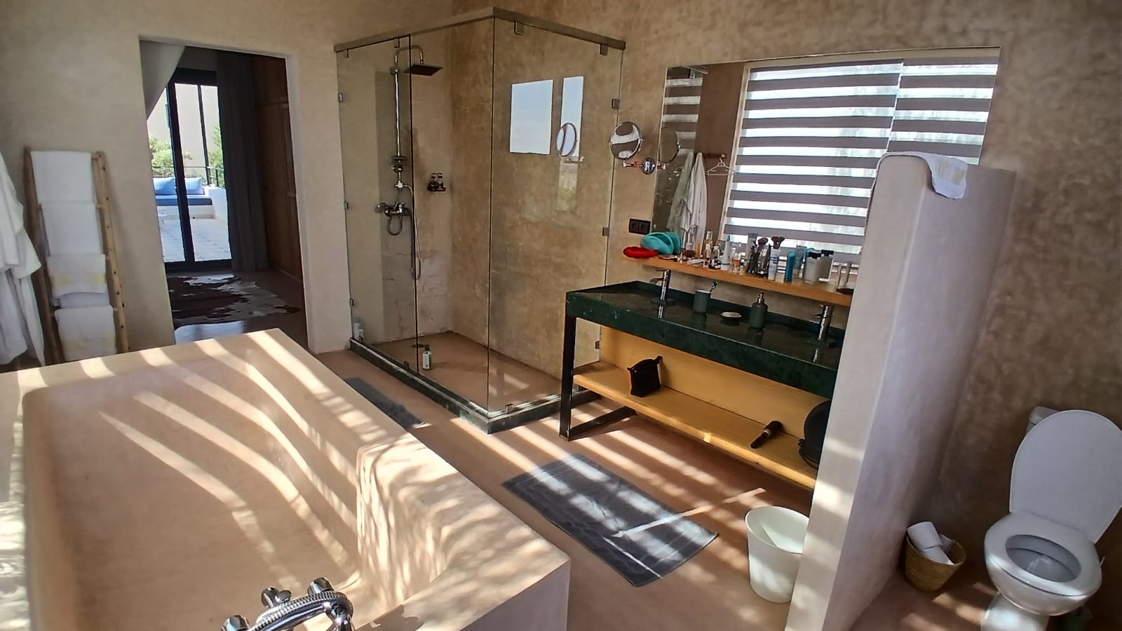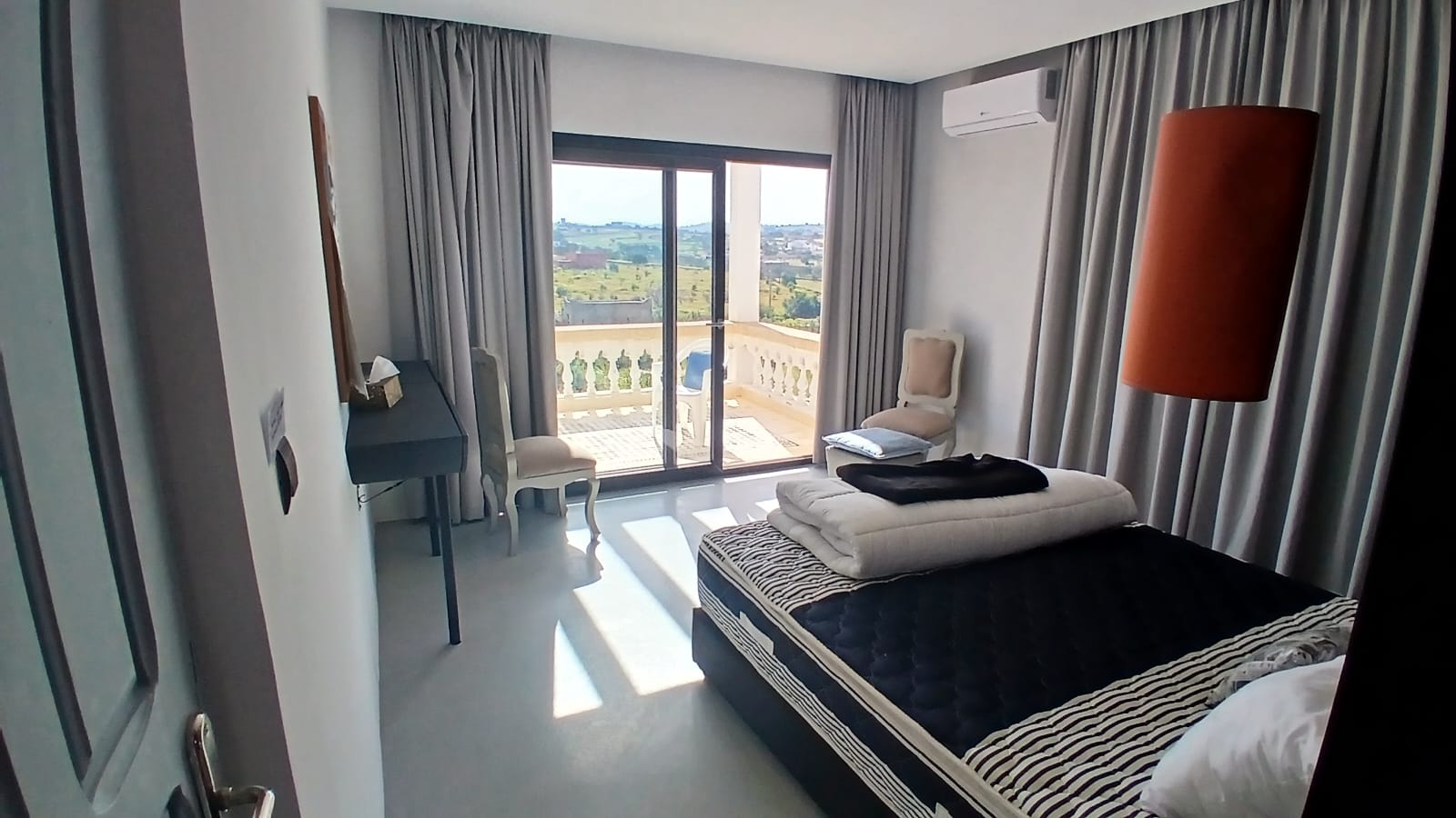 Belle villa moderne de 350 m² sur 1.2 ha avec vue dominante, maison de gardien, portail à télécommande, piscine, dépendances, buanderie, tente caïdale équipée en salle de jeu et de détente, terrasses, barbecue, roof top avec bar, hammam traditionnel.